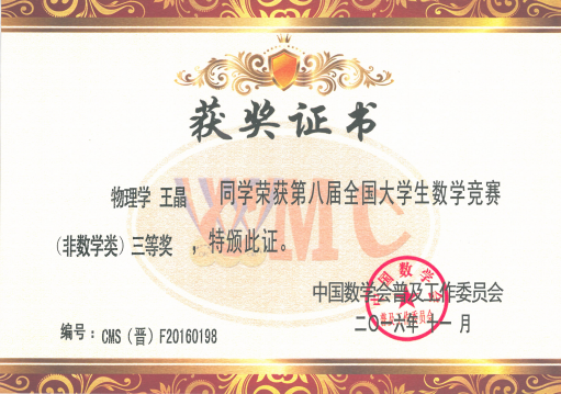 公司学子在第八届全国老员工数学竞赛(非专业组山西赛区)中喜获佳绩