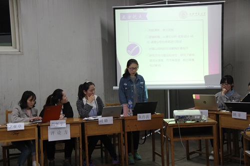 3月23日晚上7:00—10:00,第二轮选拔赛分别在田家炳07210和07219教室举行。比赛过程中,选手们竞相展示风采,进行激烈的角逐,在进行问题交锋时,深入剖析,据理力争,条理清晰并犀利地指出对方的优缺点,他们的表现获得现场观众的多次掌声。在此轮选拔赛中,共15人进入最终的决赛,并组成新的三组队伍:谢瑶欣、李倩、张喜苗、李鑫、苏慧组成新一队;秦赟、姚菲、韩杰、武嘉、张旭组成新二队;卫亚卓、问璐、朱肖波、吕怀宇、张姣姣组成新三队。