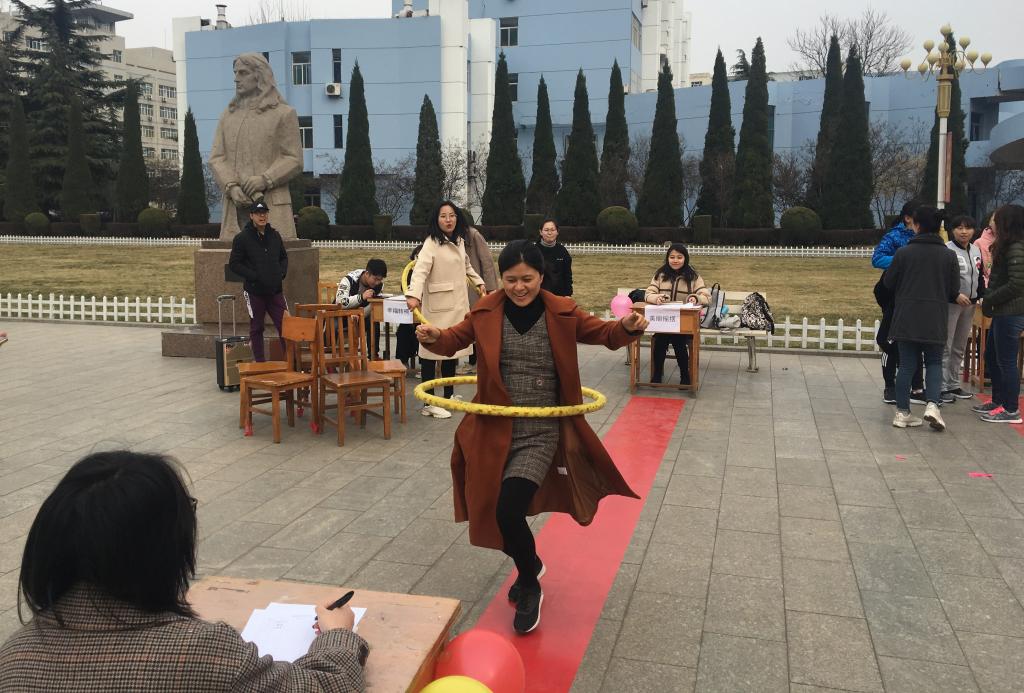 活动共分为四个内容:“幸福转椅”、“快乐闯关”、“青春旋律”、“美丽摇摆”,分别以跳绳、摇呼啦圈、吹气球、说绕口令、猜歌曲名称等健身娱乐的方式让女教工们在紧张的工作之余舒展筋骨、放松精神、愉悦心灵,找到健康向上的精神状态、找回青春洋溢的美丽风采!彩色的气球、飞舞的花绳、摇摆的呼啦圈,还有一阵阵热烈的掌声和欢呼声、一张张美丽开心的笑脸使3月8日下午的巨人广场成为了幸福快乐的海洋。