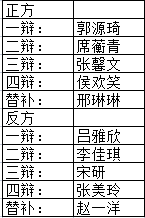 附:辩论队人员名单(文/2102班 黄可欣 2106班 刘波