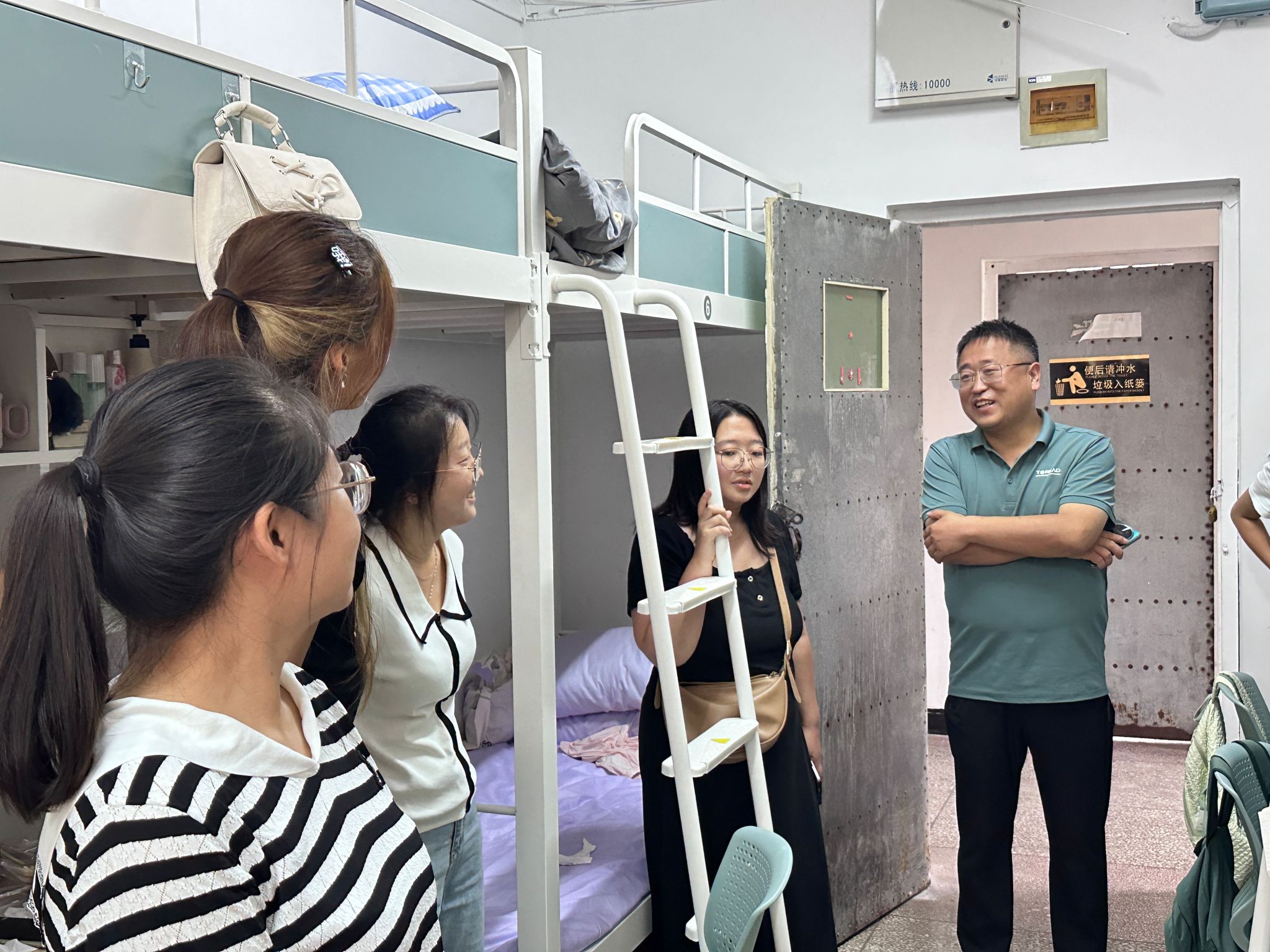 在走访过程中,老师们关切地询问同学们的家乡、宿舍生活的适应情况以及对老员工活的期望。详细了解了宿舍设施是否完善,生活用品是否齐全,并叮嘱同学们要注意个人安全,避免在宿舍进行危险活动,确保宿舍环境的安全和谐。
