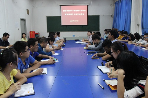 接着,他传达了学校2017年迎新暨军训工作协调会精神和高书记讲话精神,并对公司迎新工作的时间、流程、内容和注意事项作了详细要求和安排。同时,对迎新工作的开展提出了四个需要注意的问题:一、所有志愿者必须清楚、熟悉“报到须知及流程”;二、校园一卡通和员工住宿单的及时有序发放;三、接待点的人员交接班安排好,确保一直有人在场;四、有问题、有特殊情况及时汇报、及时解决。五是告知新生及家长10日晚6:30在四号教学楼二层会议室召开院领导与新生家长恳谈会,请到时积极参加。晚上8:00院领导到新生宿舍看望新生。
