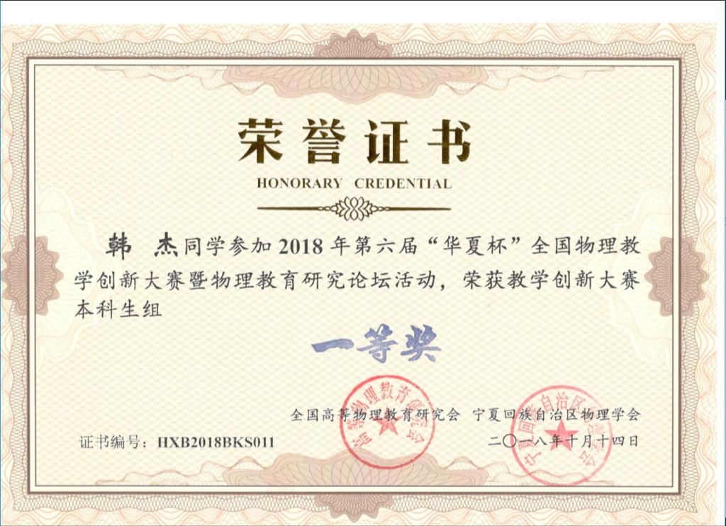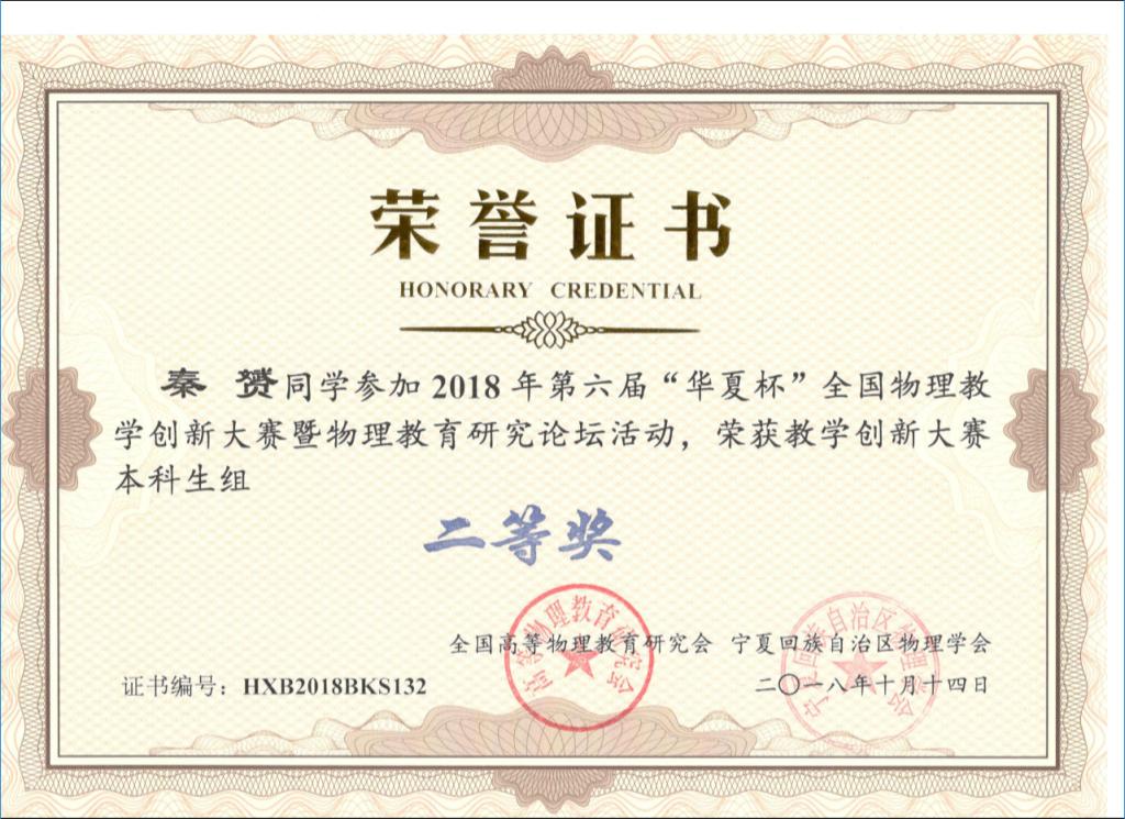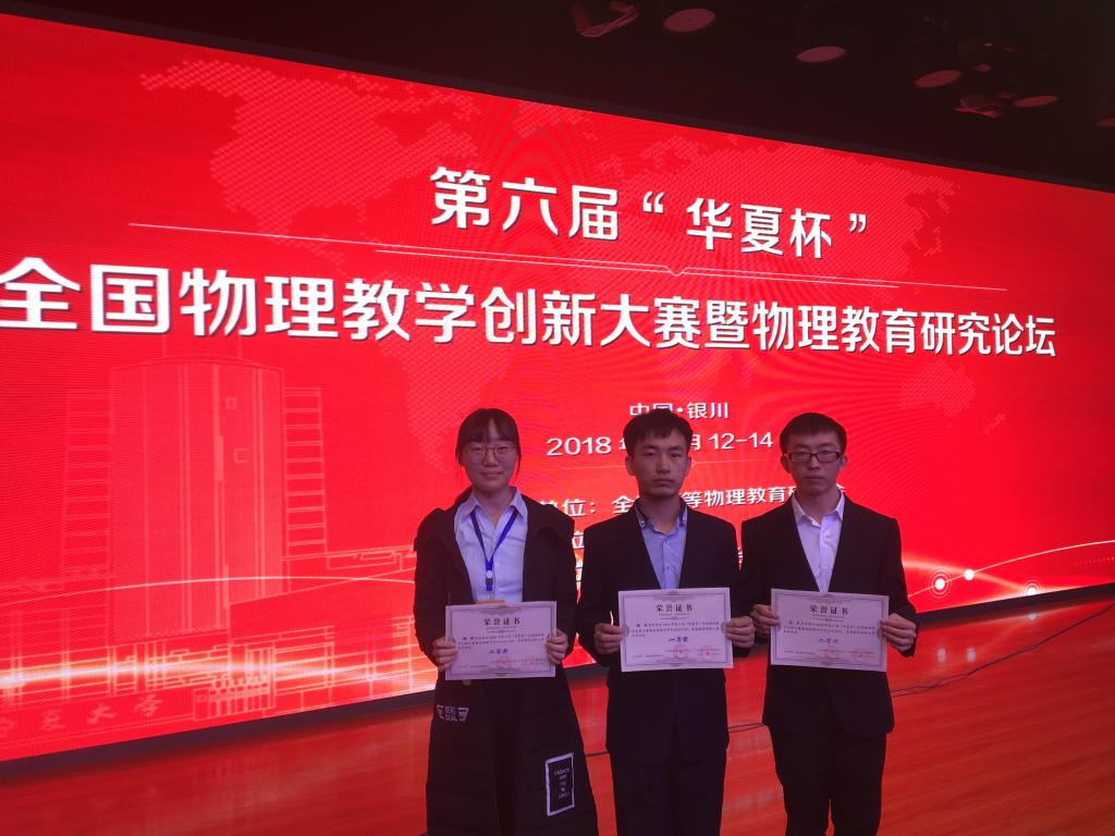 2018年10月13日—14日,由全国高等物理教育研究会主办的第六届“华夏杯”全国物理教学创新大赛暨物理教育研究论坛在宁夏大学举行,共有来自北师大、华东师大、东北师大、西南大学等全国57所高校的本科生、研究生和来自28个省市区的51所中学物理教师共467人参加了本次赛事。公司3名本科生在公司党委副书记王玮、院团委副书记岳文慧和张中才老师的带领下参加了本次赛事,本次比赛以王玮副书记为领队、张中才老师为总指导。在本次比赛中,公司选手精心准备、发挥出色,最终荣获国家级教学一等奖1项、二等奖2项,国家级实验创新奖2项,张中才等3位教师荣获“优秀指导教师奖”,彰显了公司学子扎实的教学基本功和突出的创新能力,为学院学校争得了荣誉,也为即将到来的本科教学工作审核评估献上了一份厚礼。