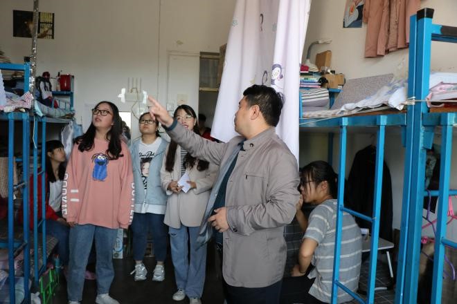 走访过程中,他详细询问了同学们的宿舍生活情况,督促各寝室认真打扫卫生,耐心叮嘱同学们注意用电安全,增强防范意识。与此同时,他对同学们在新学期的学习生活也给予了殷切期望,嘱咐同学们要做好学期规划,以更加饱满的精神风貌全身心投入到学习中去。