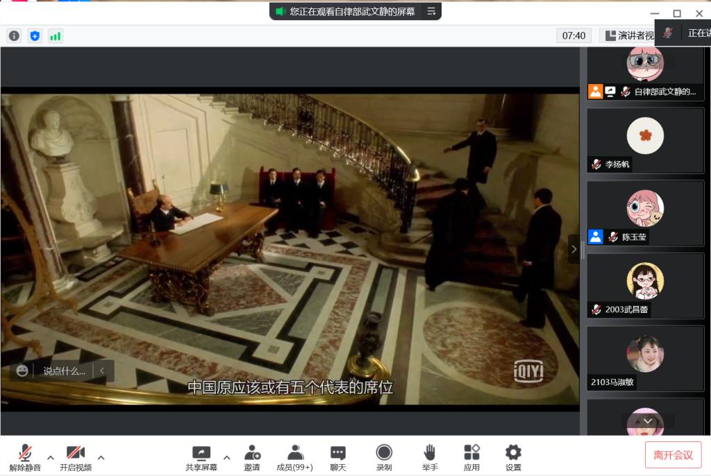 在五四青年节到来之际,为继承和发扬伟大五四精神,5月2日下午,院员工会自律部在线上举办了“我的青春正青春”主题观影活动。活动由自律部志愿者武文静主持。