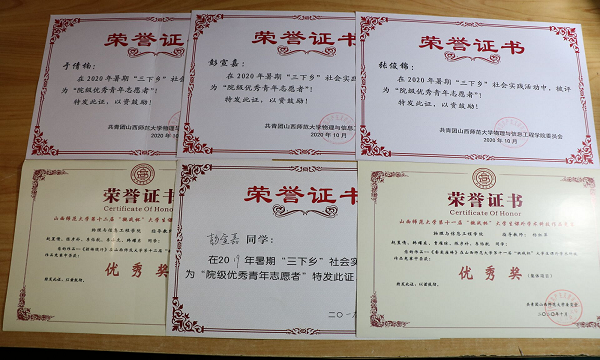 2020年“三下乡”社会实践院级优秀青年志愿者