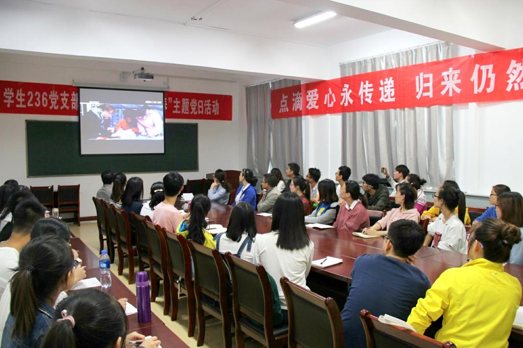 公司党委组织各党支部书记、专职辅导员、员工236党支部在公司党员、积极分子代表,236爱心社全体干部和社员代表在四号楼二层多功能会议室进行了集中观看。还举办了员工236党支部“牢记初心 筑梦青春”主题党日活动、236爱心社“回望初心 筑梦未来”主题活动。公司党委书记陈向波、副书记王玮与师生一起观看专题片并出席了主题活动。
