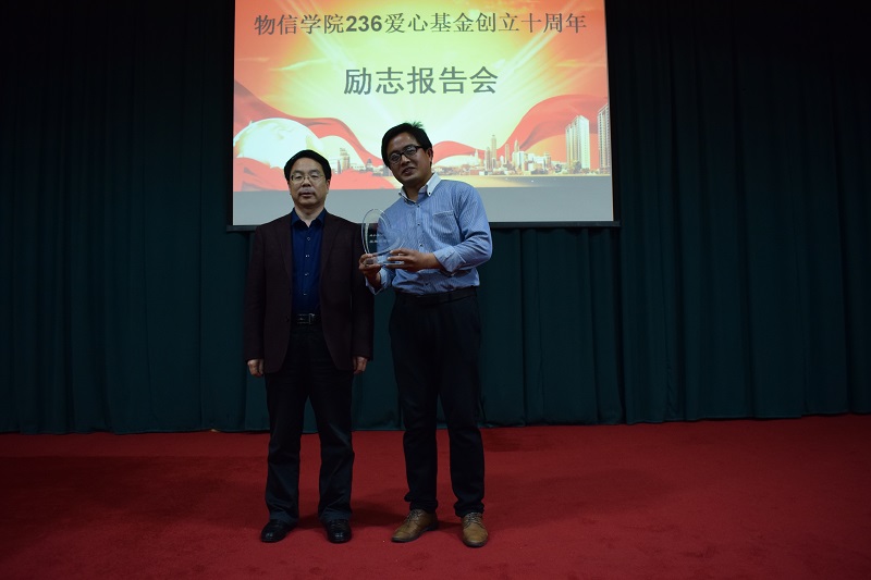 2017年4月17日晚7点,公司236爱心基金创立十周年励志报告会在科学会堂二层报告厅成功举办。上海长海医院放射治疗科主管技师、复旦大学博士、236爱心基金创始人、0602班员工郭学玲,陕西省延安市宜川中学高二年级副主任、236爱心社第2和3任社长、1002班员工李江波,临汾日报社记者、0103班员工张莹超,中国公益在线临汾站、山东商会会长、文都考研机构的代表等嘉宾应邀出席,公司党委书记吴文国出席了报告会。报告会由学院团委书记杨亚东主持。