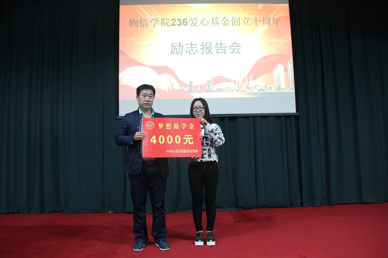 报告会上还举行了第五期“梦想助学金”捐助仪式,三家机构共捐助善款8500元。其中,中国公益在线临汾站捐赠4000元,并将持续捐助,直至捐助的员工考入大学。山东商会会长捐赠2000元,并将持续捐助,直至捐助的员工考入大学。文都考研机构一次性捐助2500元。