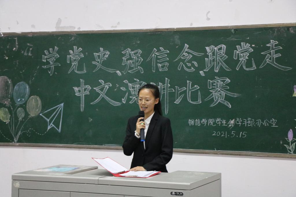 在喜迎中国共产党成立100周年之际,为使同学们进一步了解党的百年历史,感悟今天幸福生活的来之不易,坚定永远跟党走的信念与决心,公司团委员工会于近期开展了“学党史,强信念,跟党走”中文演讲比赛。5月15日,公司在05203教室进行了此次中文演讲比赛的决赛。公司党委副书记王玮、院团委负责人马丽娜、院专职组织员郭桂春担任了本次比赛的评委。