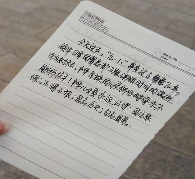 本次活动的开展不仅加深了同学们对“九一八事变”的认识,让同学们深知战争的痛苦,珍惜和平的不易,更激发了员工们的爱国热情和民族责任感。(文/1803班武佳 摄/1803班)