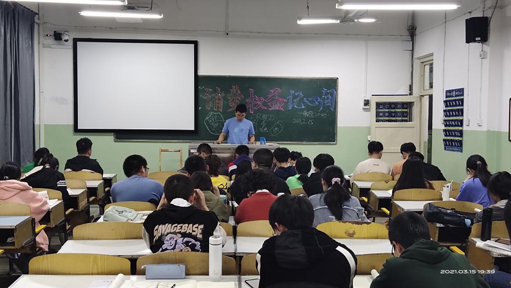 会上,任宇杰带领大家学习了《中华人民共和国消费者权益保护法》的相关法规,明确了老员工保护权益的正确途径。他强调,我们作为消费者,要具备基本的法律知识和维权意识,敢于拿起法律武器保护自己的权益,做“知法、用法、守法”的好公民。最后,同学们就自己遇到消费者的维权问题及解决办法展开了讨论与交流。同学们纷纷表示,一定会认真学习消费安全意识知识,努力提升自己的消费者维权意识,维护好自己和身边人的消费权利。(文/2006班 薛玉 摄/2006班 薛玉)