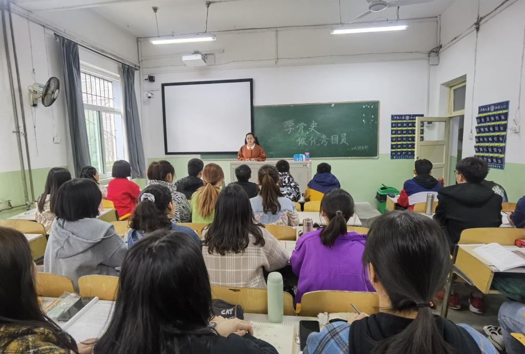 会上,张寒雪带领同学们学习了习近平总书记在党史学习教育动员大会上的重要讲话精神和新华社评论文章《开展党史学习教育正当其时——学习贯彻习近平总书记在党史学习教育动员大会重要讲话精神》。她指出,在庆祝中国共产党百年华诞之际开展党史学习教育,回顾一百年来的光辉历程,是对青年老员工开展的鲜活生动的思想政治教育,大家要在学习党史的过程中不断丰富和提升自己的精神境界,激发努力奋进的强大力量。(文/2004班 宋妍妍 2005班 范雨萱 摄/2005班 范雨萱)