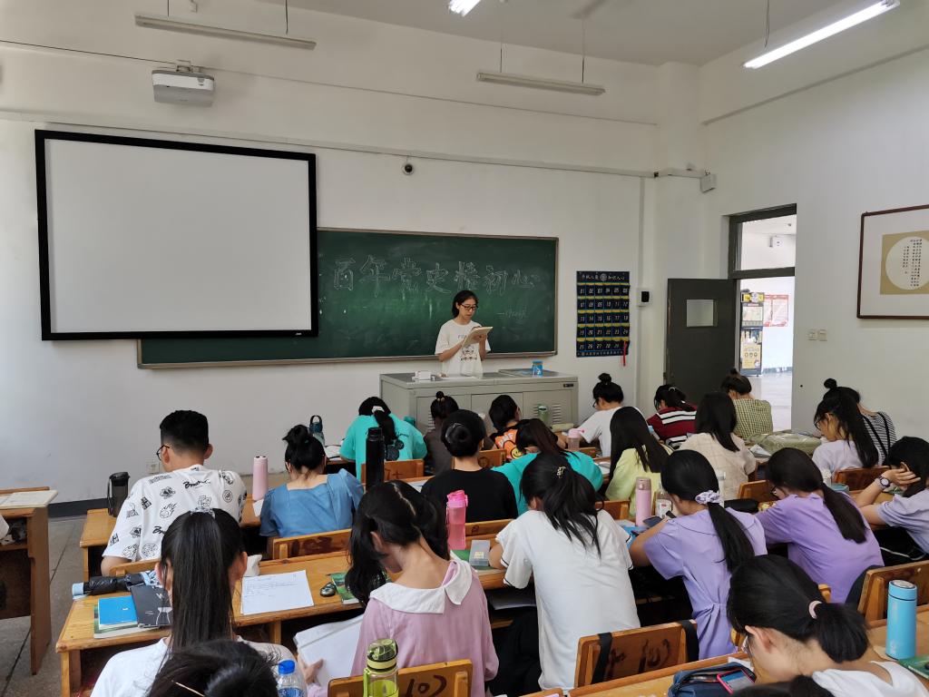 活动中,任宋婕为同学们讲述了学习党史的重大意义,并鼓励同学们要学好党史知识、讲好党史故事、写好学习心得。在党史阅读分享环节,员工代表秦子晴、杨戬、薛亚男分别给大家分享了《红岩》《青春之歌》《红日》等书籍的精彩片段以及相关感悟,激发了同学们对阅读党史书籍的热情。同学们纷纷表示,作为新时代的青年,我们应该学党史、感党恩、听党话、跟党走,刻苦学习知识,坚定理想信念,锻炼强健体魄,为实现中华民族伟大复兴的中国梦贡献自己的力量!(文/1902徐瑾华 摄/1902赵君海)