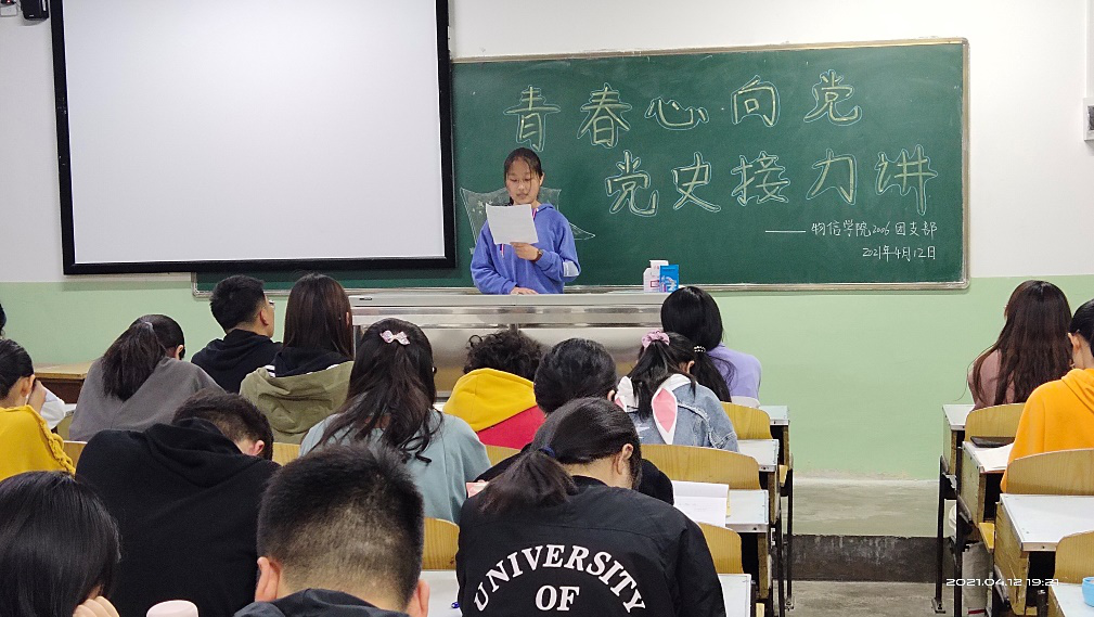 为加深同学们对党史的了解,坚定跟党走的理想信念,4月12日,公司2006团支部于01316教室开展“青春心向党 党史接力讲”主题团日活动。此次团日活动由团支书王文慧主持。