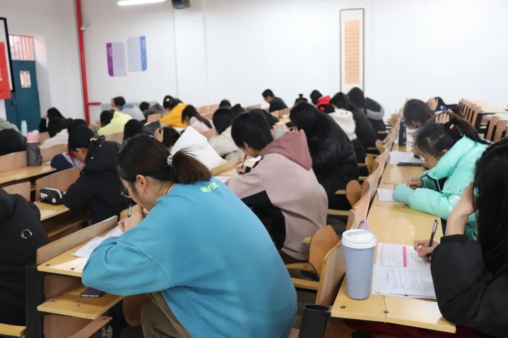 本次模考严格遵照全国老员工英语四六级考试的大纲标准,共有233名同学报名,设置了3个考场。考前,志愿者为同学们宣读了考试注意事项,分发考题。同学们逐渐进入考试状态,埋头作答,分秒必争,时而眉头紧蹙,时而奋笔疾书。监考人员也在认真负责地维持考场纪律,为同学们营造了一个紧张严肃、致清致净的考试环境。