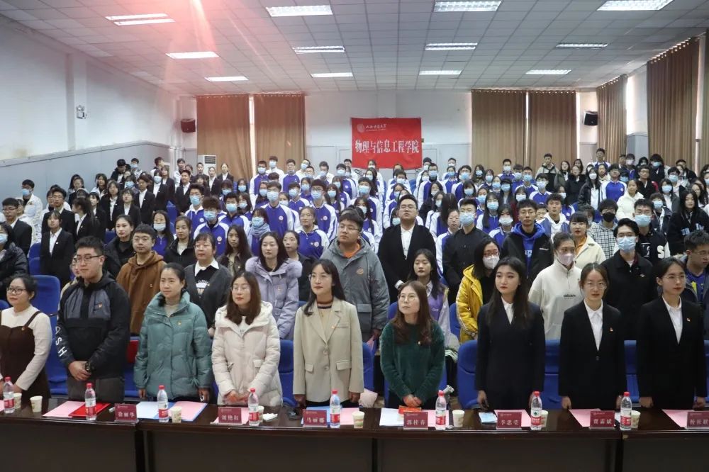 在高昂的国歌声中,2021届团委员工会换届暨表彰大会拉开帷幕。