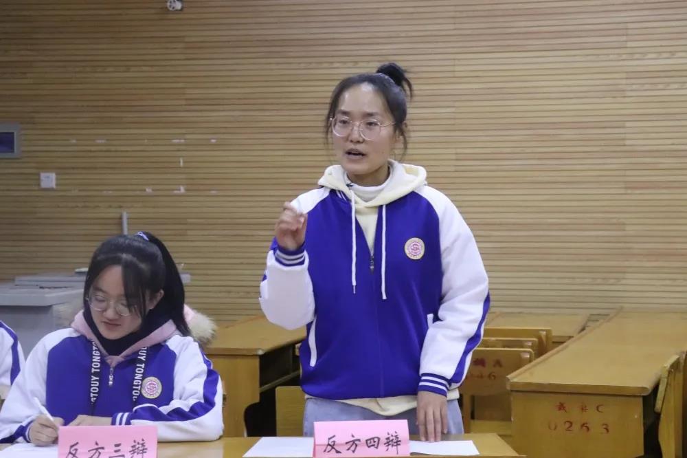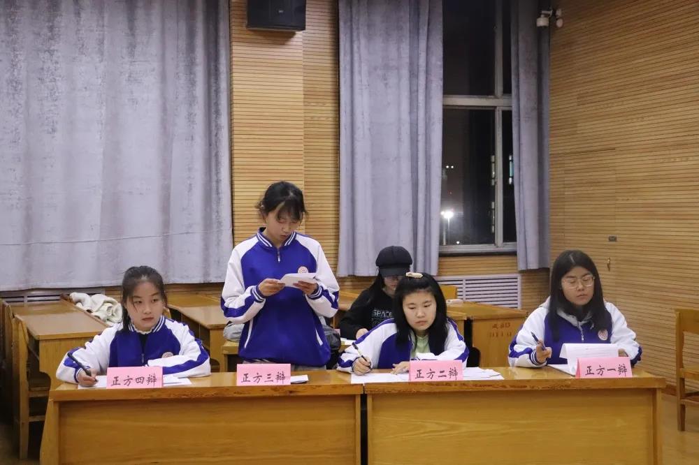 比赛共分为两轮,通过抽签决定正反方。双方分别就“网络匿名特性是否有助于公共话题”、“通才与专才哪个更吃得开”两个辩题展开辩论。辩手们就各方辩题表明观点。攻辩环节,同学们妙语连珠、舌枪唇剑、互不退让,通过援引事例、深入分析,条理清晰地将自己的观点表述出来。双方各具一势,或引经据典,或语惊四座,引得在场观众不禁紧张起来。比赛结束后,四位评委首先对辩手们的个人能力予以肯定,并针对辩手个人现场表现较为薄弱之处提出了改进意见。