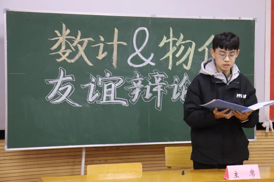 12月11日晚,公司联合数计学院在南区五号楼5410教室开展友谊辩论赛。公司辩论队队长任昊,2021中文辩论赛一等奖获得者程龄莹,数计学院辩论队队长赵国华,副队长尚运波担任本次友谊赛的评委。公司学创部志愿者郭柏毓担任辩论主席。