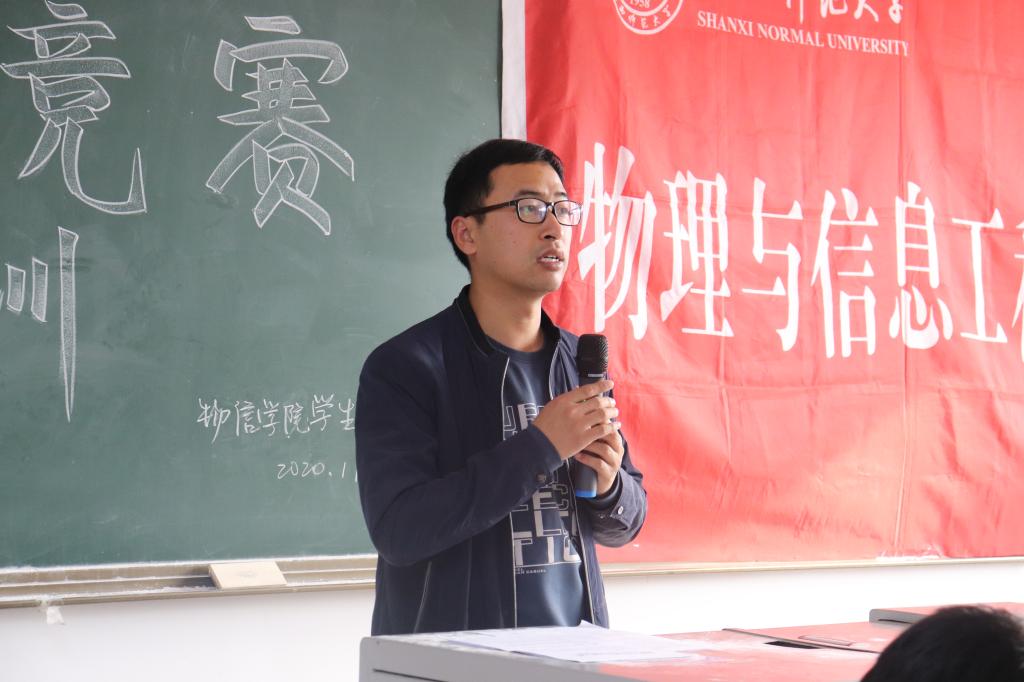 本次培训邀请到了学院竞赛指导组成员、物理学实验室主任程留永老师以及在2019此项赛事中获得省级二等奖的刘立培、郑红岩两位同学为大家进行指导、分享竞赛经验。