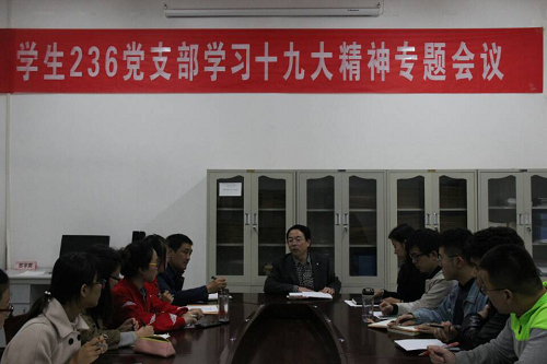 10月25日晚6:10,公司员工236党支部在四号楼04106召开学习十九大精神专题会议暨支部书记选举会议,会议由支部副书记陈秀文老师主持。