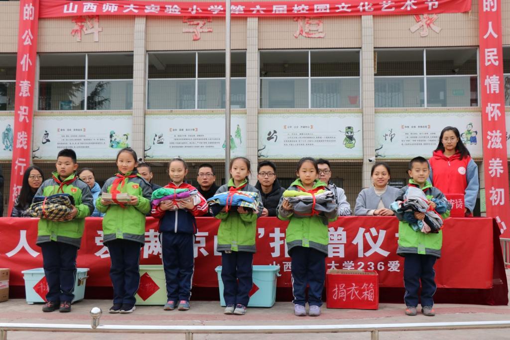 仪式结束后,实验小学员工向四川省西昌市彝族自治州的山区小学共捐献衣物2500余件,书籍300余本,玩具、文具五箱,并为贫困地区孩子们书写了爱心寄语。
