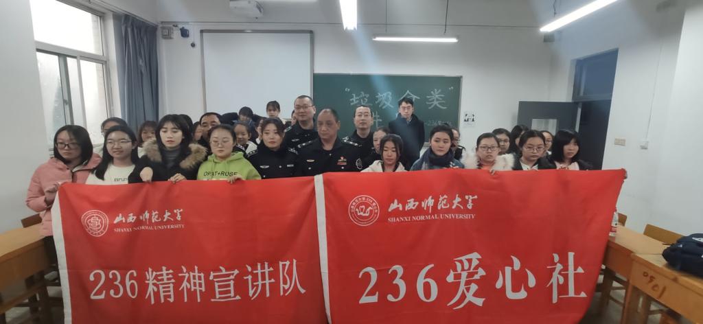 2019年11月30日上午,236爱心社在07307教室开展了“垃圾分类”专题讲座。此次讲座由临汾市环境卫生管理局南城所指导员王国俊主讲。236爱心社部分社员聆听了此次讲座。