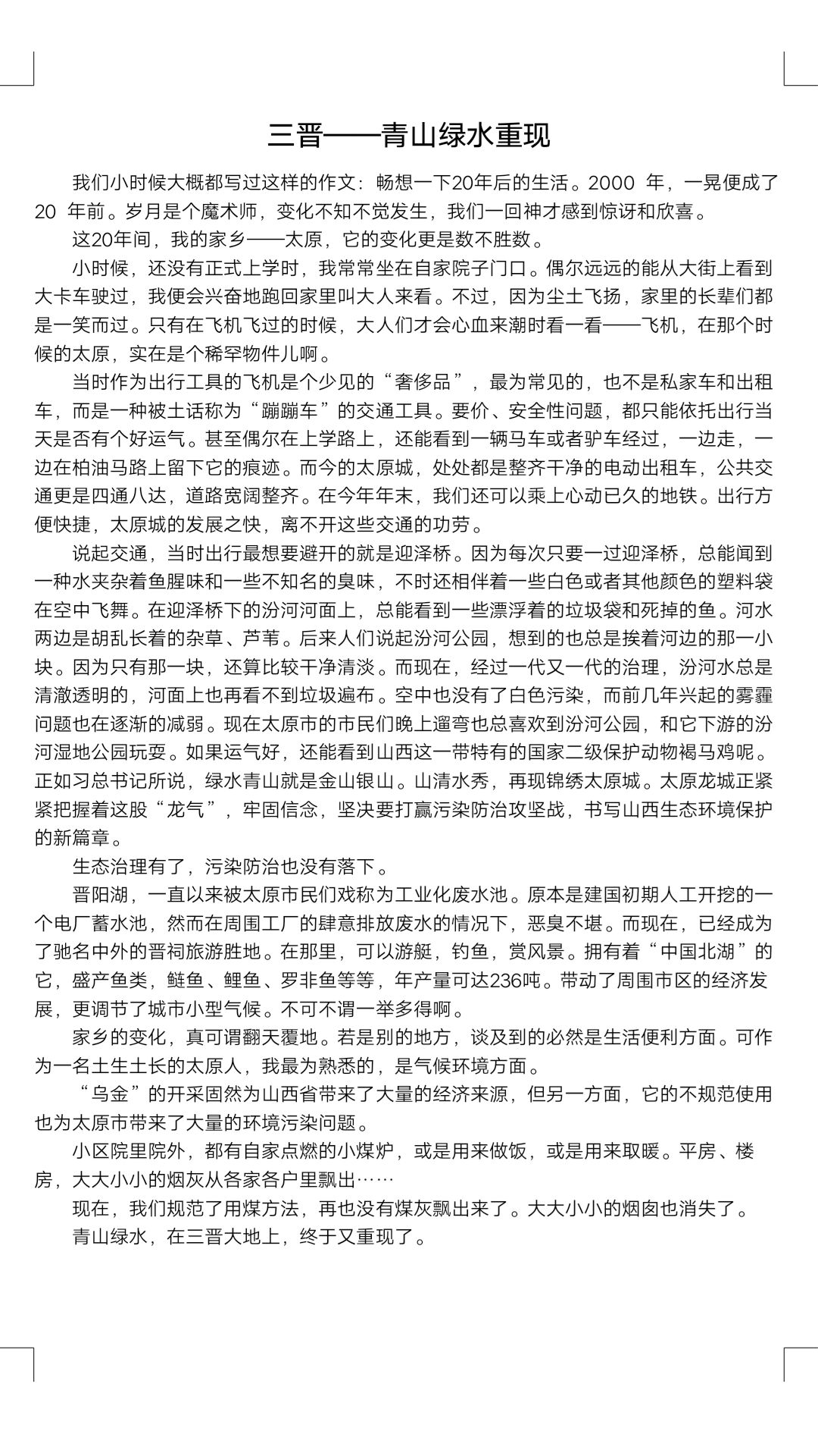 此次活动记录了山西多彩的变化和全新的面貌,展示了同学们内心对三晋变化最真实的情感。习近平总书记的肯定和勉励也增强了同学们对家乡的爱与肯定,更坚定了同学们立志为家乡作出贡献的决心。(文/1903 郭石璇)