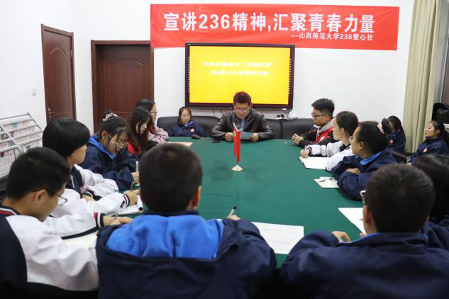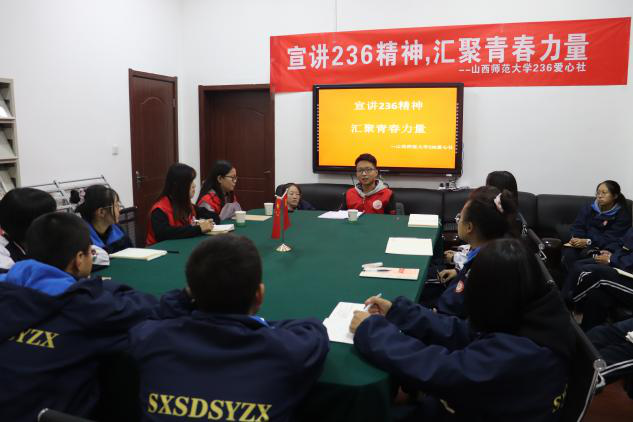 2020年10月21日下午,236爱心社成员受邀赴英国365集团公司实验中学进行了宣讲交流活动,活动在实验中学党员活动室中展开,实验中学高一各班团支书参加了此次活动。