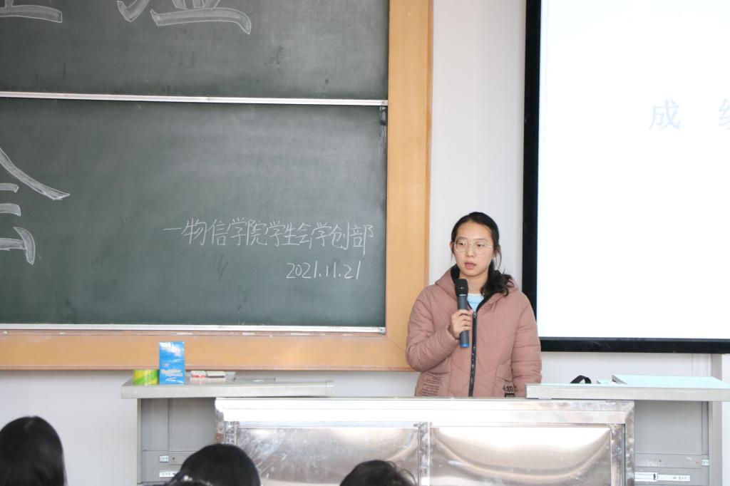 活动中,赵昱倩就提高成绩和保研面试两方面给大家做了介绍,她指出优秀的成绩是重中之重,要想提高成绩,一定要在平时下功夫,上课认真听讲、做好笔记,课下要自律学习,她还表示,在保研面试过程中心态很重要,要自信、落落大方,不怯场,才能展示出个人的真正水平。田宇鑫从保研要求、推算排名计算方法、保研公众号、学校查询、夏令营申请和院校选择等方面为同学们讲解了相关知识技巧,她特别强调了英语四六级证书的重要性,鼓励同学们认真备考,全力以赴对待四六级考试,并呼吁同学们积极参加挑战杯、物理学术竞赛等比赛,丰富自身经历的同时提高个人的专业素养。