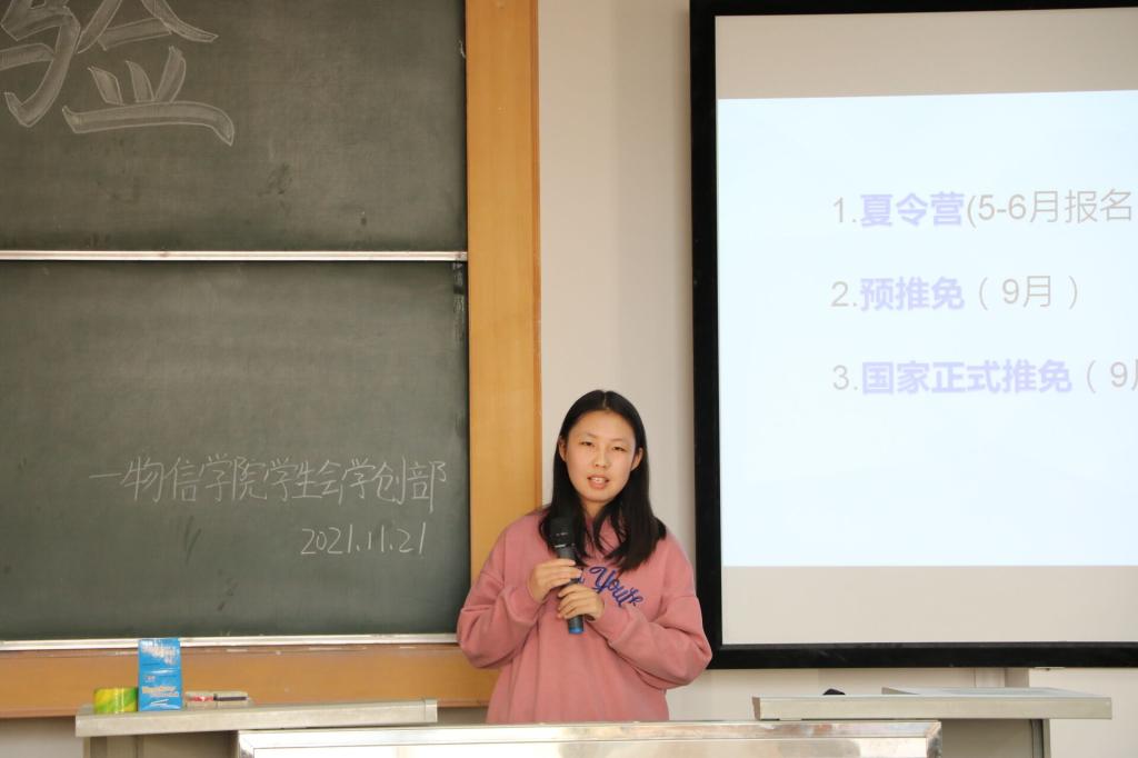为了让同学们深入了解保研相关知识,11月21日,公司员工会学创部在南区三号楼3310教室举办了2021保研经验交流会。此次交流会邀请了保研至复旦大学的赵昱倩和北京理工大学的田宇鑫为同学们分享经验,解答关于保研的问题与疑惑。