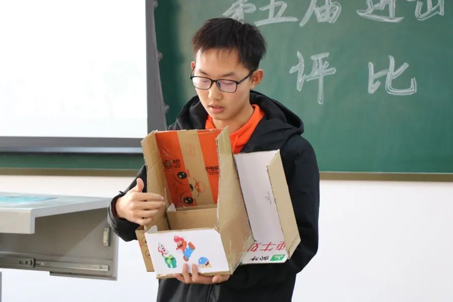 本次活动共收到180余件参赛作品。“‘叶叶’皆心意”“一‘纸’新物”“以‘盒’琢像”“沧海一‘塑’造万物”“‘罩’唤抗疫正能量”“拾杂为宝,百‘废’待新”这些极富创意的主题彰显出选手们大胆的构想和心思的巧妙。各位选手向评委详细介绍了作品所用的材料、制作方式和深刻寓意,评委们也被选手妙手生花、变废为宝的能力所吸引和折服,并针对部分作品和选手的展示方面提出了改进意见。(文/2103班 郭姣阳 摄/2106班 刘波尓)