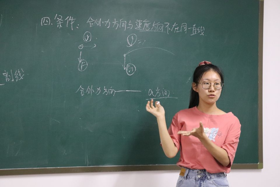 初赛中,选手们赛前准备好教案和课件,比赛中,大家以课件与板书相结合的形式,用通俗、易懂、生动的语言和生活的实例讲解了“曲线运动”“牛顿第二定律”“力的合成与分解”“自由落体运动”等课题内容,精彩的讲授展现了选手们的教学能力和良好的精神风貌。