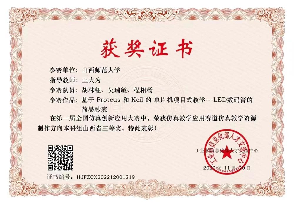 2022.11第一届全国仿真创新应用大赛省三等奖