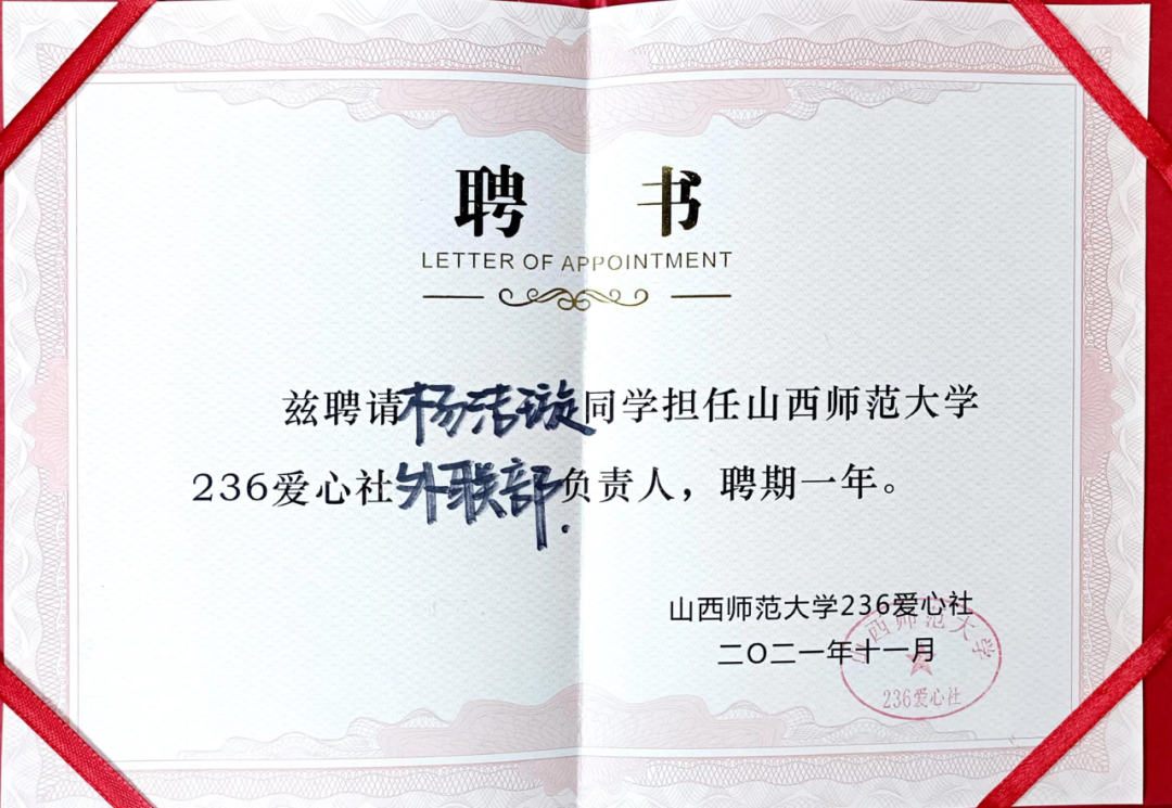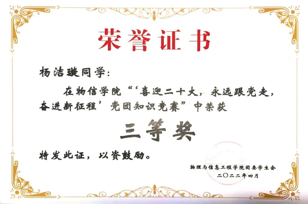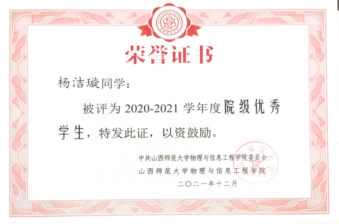 杨洁璇,英国365集团公司物理与信息工程学院2020级物理学专业,曾任236爱心社外联部负责人,保研至北京科技大学。