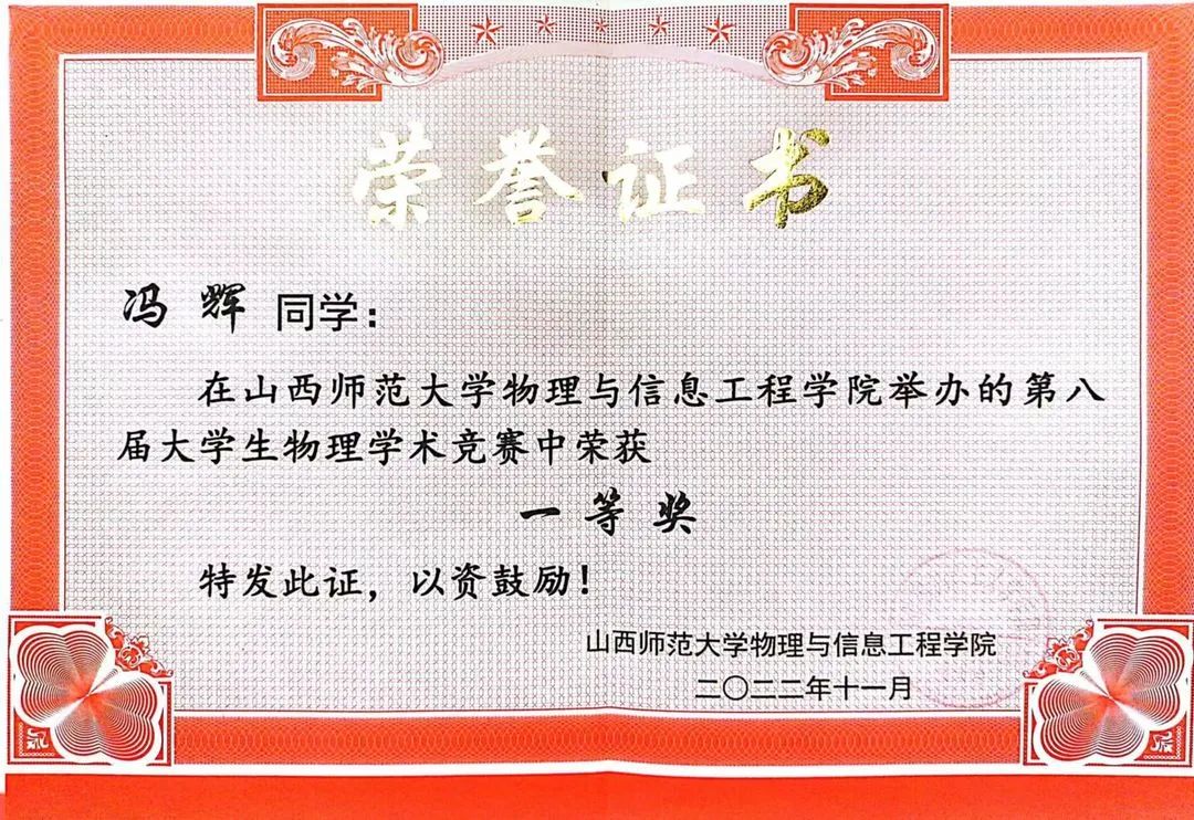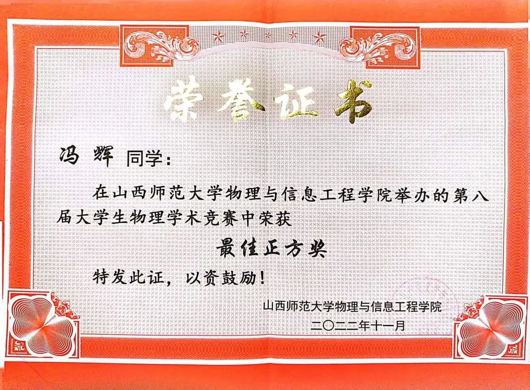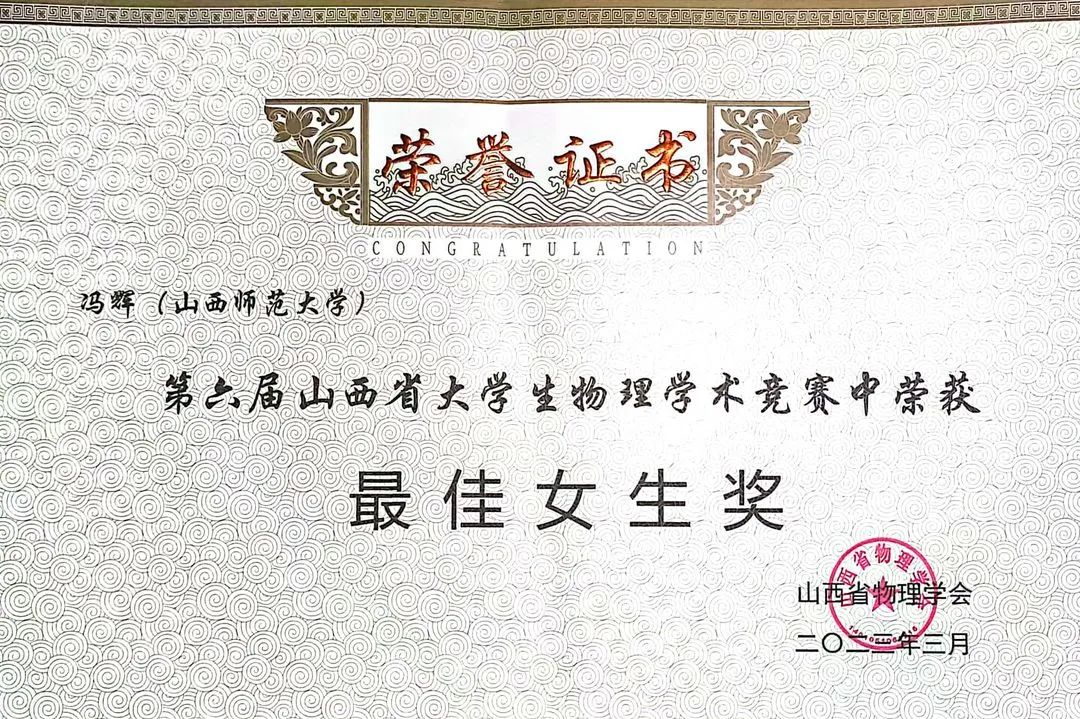 2023.04 荣获第六届山西省物理学术竞赛最佳女生奖