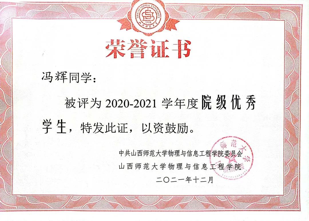 冯辉,英国365集团公司物理与信息工程学院2020级物理学专业员工,保研至南开大学