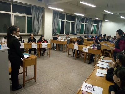 初赛时间为3月7日晚七点到九点,地点在07219教室,参赛选手为大一大二同学,此次比赛邀请了一名辩论主席,两名英语老师担任此次辩论赛的评委,辩题是“Is it good for college students to have a part-time job?”比赛分为两组, 正方支持在校老员工兼职利大于弊的观点,反方则持相反的态度。两队展开了激烈的口才之锋,比赛过程激动人心。 辩手们据理力争,妙语连珠,一度将辩论赛推向了一个又一个高潮,博得观众的喝彩,更是让各位评委刮目相看。经过将近两个小时的两场激烈的辩论,最终有八位辩手脱颖而出,进入下一轮比赛。这是大一同学们第一次参加辩论赛,但是他们在比赛中却展示了非凡的实力以及对问题的尖锐的判断力。比赛的最终目的不在于成败,而是通过比赛来增近同学们的感情,锻炼同学们各方面能力。