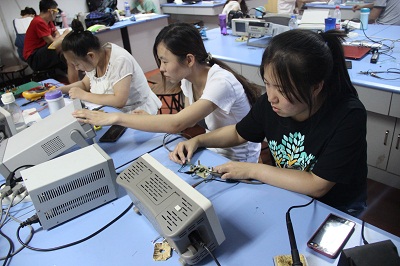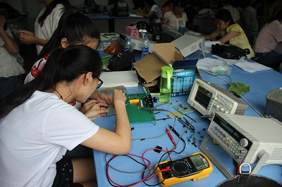 5月份,电子专业5名教师利用每天晚上和双休日,轮流对32个小组的96名同学进行了系统的电子设计培训和测试,他们分别从选题分析、设计思路、元器件选取、实物制作、故障分析和设计报告制作等方面对参加竞赛的员工展开培训。