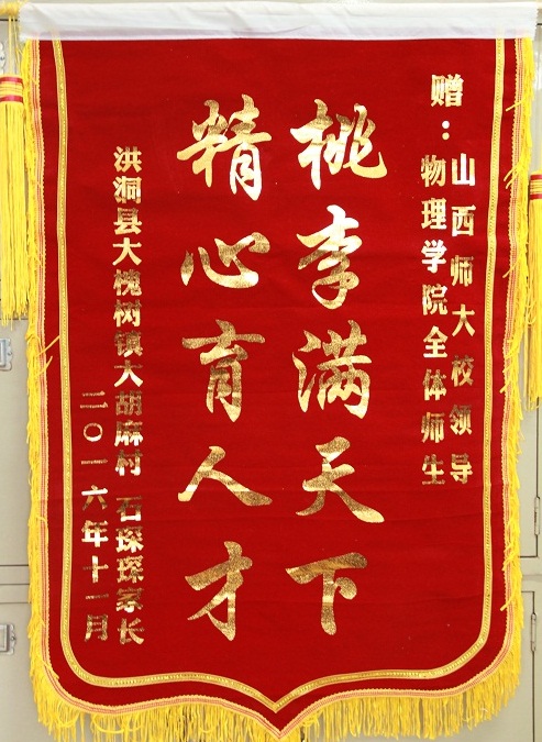 11月8日,为感谢学院、学校广大师生的无私捐款,石琛琛同学的父亲特地来学校,献上了一面锦旗,学院领导亲自接见了这位坚强的父亲,并衷心祝愿孩子早日康复,返回学校。