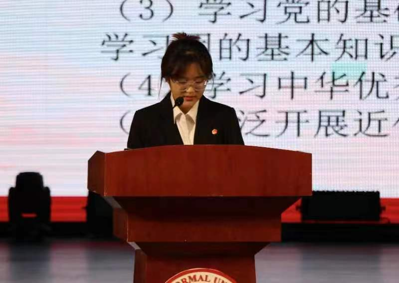 院团委办公室负责人赵廷怡结合PPT详细介绍团组织的基本制度——“三会两制一课”。紧接着,院员工会主席团成员张晓蔓强调了新生入团再教育的重要意义,并介绍了新团员入团程序,鼓励更多优秀的青年员工加入中国共产主义青年团。最后,启动仪式在团歌《光荣啊,中国共青团》激昂的旋律中落下了帷幕。
