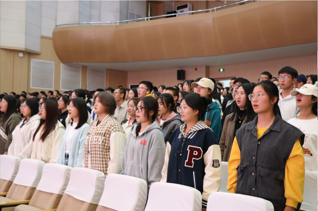 伴随着嘹亮的国歌,2023级新生入团再教育启动仪式正式拉开序幕。