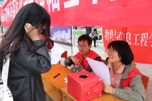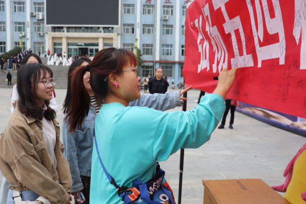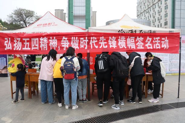 活动前期,志愿者们准备了大量关于五四运动、五四精神的知识竞答题目,在活动现场,志愿者们邀请来自各个学院的员工参与知识竞答,以寓教于乐的方式引导大家对五四运动有了更多的关注和认识。在写有活动主题“弘扬五四精神,争做时代先锋”的条幅上,大家纷纷签名,表达了同学们秉持不忘初心、牢记使命的信念,争做新时代的开拓者和建设者的决心。(文/2001班 程钰祺 摄/2004班 宁紫轩)