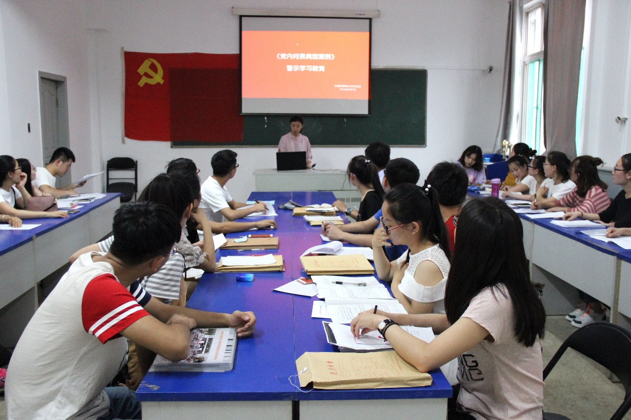 6月9日,物理学A支部在四号楼二层多媒体会议室召开了《党内问责典型案例》警示学习教育,李俊生同志首先带领全体与会党员认真学习了《党内问责典型案例》,并结合《中国共产党问责条例》对九起典型案例进行了深入剖析,党的领导干部要切实担负起管党治党的政治责任,履好职尽好责,增强党的凝聚力和战斗力,永葆先进性和纯洁性。随后,与会党员对典型案例进行了讨论,党员同志们一致认为,落实全面从严治党“两个责任”不力被问责的这九起典型案例,具有很强的代表性,充分显示了党中央从严治党的鲜明态度和坚定决心,充分体现了我们党坚持在纪律面前人人平等的原则,充分说明全面从严治党、加强党风廉政建设和反腐败斗争永远在路上。在实践中,每位党员都应不断强化责任意识,增强担当精神,立足岗位,争做合格党员,才能有序推进各方面工作,做到守土有责、守土有方、守土有效。