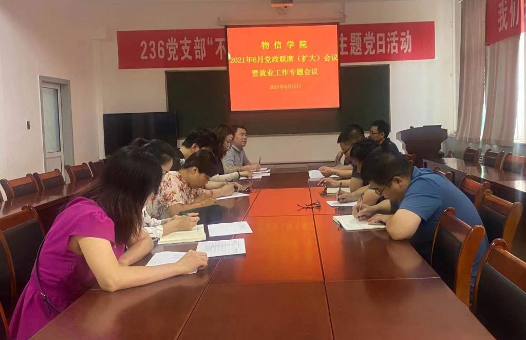 6月15日下午,我院在四号楼二层会议室召开了2021年第八次党政联席(扩大)会议暨就业工作专题会议,学院党政领导、各系主任、毕业班辅导员出席了会议,会议由院党委书记陈向波主持。