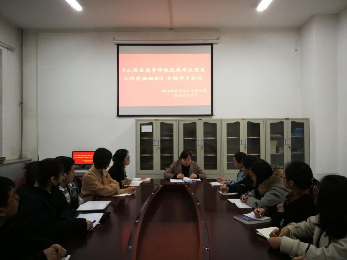 2019年2月27日晚7:20,公司员工电子党支部在四号楼一层会议室召开专题学习会议,支部全体党员参加了会议,会议由支部书记卫永霞主持。