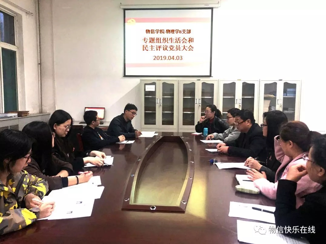 2019年4月3日19:00,公司物理学B支部全体党员在04106会议室召开了2018年度支部专题组织生活会和民主评议党员大会。会议邀请了公司党委副书记王玮参加并监督指导。会议由支部书记程留永主持。