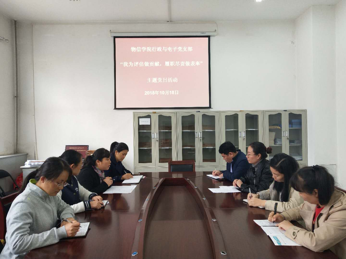 最后,公司党委书记陈向波同志指出, 本次主题党日活动的开展,是要求教师党员切实为学院做一些事情,尤其在评估关键时期,一定要加强工作纪律,规范言行。要求跟每位党员签订《党员责任书》,并附有自己的任务清单,把工作落到实处,以饱满的热情和昂扬的精神状态迎接本科教学工作审核评估。