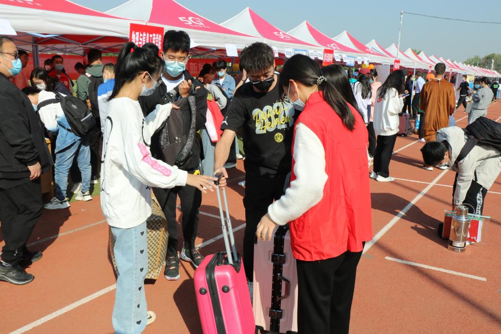 迎新期间,学校领导先后到各学院报到点迎接2022级新生、慰问奋战一线的志愿者们。公司领导还在报到点为新生解答疑惑,帮助新生搬运行李。