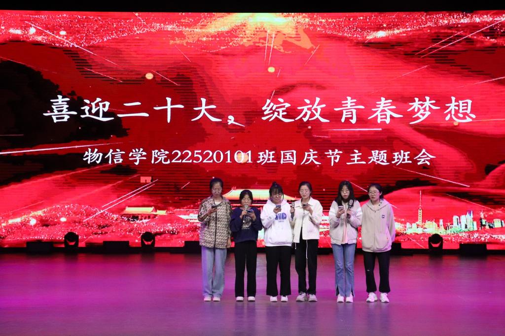 10月1日晚,公司2201班在北区文化艺术活动中心开展“喜迎二十大,绽放青春梦想”主题班会暨班级交流会。班助韩攀栩以及2201全体同学参加了本次班会,辅导员颜志刚出席活动。会议由副团支书宋子垚主持。